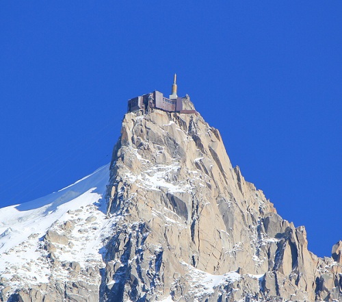 L’aiguille du Midi est accessible depuis Chamonix grâce à deux téléphériques. Le premier permet de passer (téléphérique plan de l’Aiguille) de 1000 mètres à 2300 mètres, le second (téléphérique de l’Aiguille du Midi) permet d’atteindre 3777 mètres. Ces 2700 mètres de dénivelés se font en vingt minutes. A la sortie du téléphérique, on a un magnifique point de vue sur Chamonix. Un ascenseur permet d’accéder au point culminant, soit à plus de 3800 mètres, avec un fabuleux point de vue sur le Mont Blanc. Une télécabine (panoramic Mont-Blanc) permet d’observer le Mt Blanc sous tous ses angles en direction de l’Italie. On aura également une vue sur le Cervin, le mont Rose, les Aravis (Pointe Percée), le Genevois, le Jura et la Chartreuse. Le voyage se termine sur les terrasses d’Helbronner.